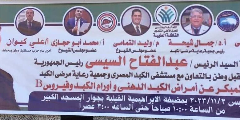 استكمالا للقوافل الطبية المجانية التي ينظمها حزب مستقبل وطن بمحافظة دمياط تحت إشراف امين عام الحزب بالمحافظة المحاسب علي كيوان والمستشارمحمد الماشطة امين التنظيم وتحت رعاية نواب الحزب محمد الحصي عضو مجلس النواب والمهندس وليد صلاح التمامي عضو مجلس الشيوخ وامين عام الحزب بالزرقا والنائب محمد ابوحجازي عضو لجنة الصناعة بمجلس الشيوخ وأمين قطاع الأعمال بالحزب بدمياط، إنتهت اليوم الجمعة القافلة الطبية المجانية للكشف المبكر عن أمراض الكبد الدهني وأورام الكبد وفيروس بي بقرية الابراهيمية القبلية بمركز شباب السعيدية التابعة لمحافظة دمياط، تحت رعاية نواب حزب مستقبل وطن حيث شهدت القافلة إقبال كبير وملحوظ من ‪ الأهالي أثناء الكشف وسط كوكبة من الدكاترة المتخصصين وسيتم المتابعة معهم بمعهد الكبد فى شربين بالمجان. كما تقدم نواب الحزب بخالص الشكر والتقدير للدكتور جمال شيحة رئيس جمعية رعاية مرضي الكبد على حسن تعاونه في كافة القوافل الطبية التي تمت ووصلت لجميع القري والمراكز بدمياط من أجل تقديم خدمة طبية مجانية لأهالي كل قرى ومدن محافظة دمياط، سائلين الله العلي العظيم ان يشفي كل مريض وان يُلبسهم تاج الصحة والعافية